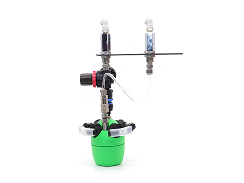 干雾加湿罐通过气水二流体混合,再经三次气化剪切作用,被从喷口部喷出的音速空气再次微粒化,与从另一喷口也被同样微粒化的气雾在撞击,相互反复剪断的同时,发生3.3万-4万万赫兹的声波将液滴更加微粒化,均等化的雾化原理实现多级雾化获得良好的喷雾效果。